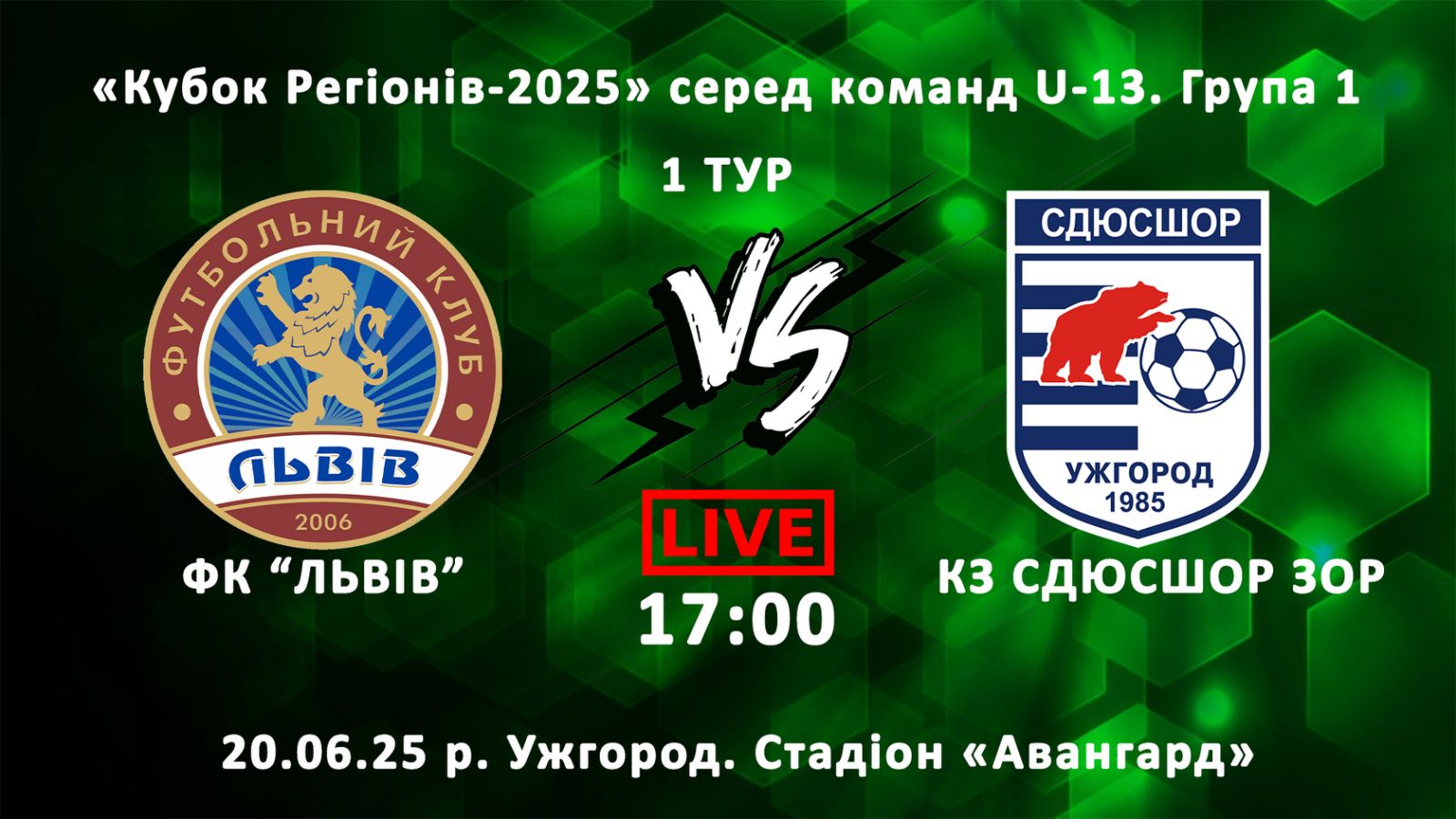 Уже сьогодні на ужгородському стадіоні «Авангард» розпочались зональні матчі футбольного Кубка регіонів-2025 серед команд U-13.