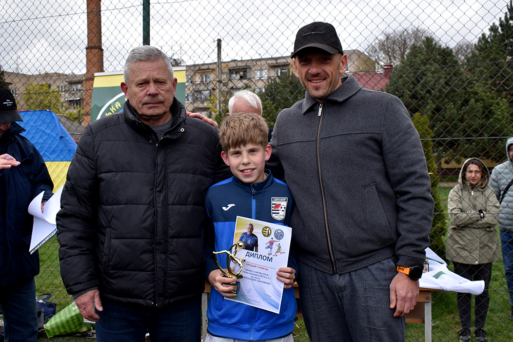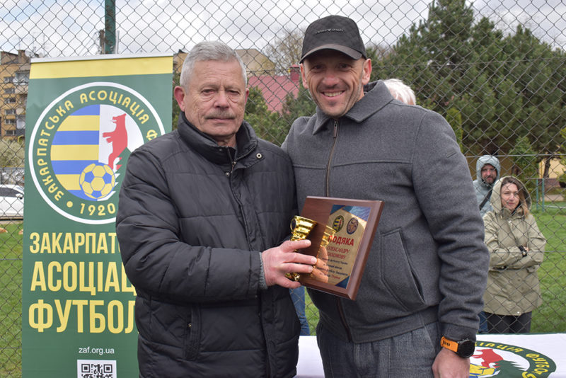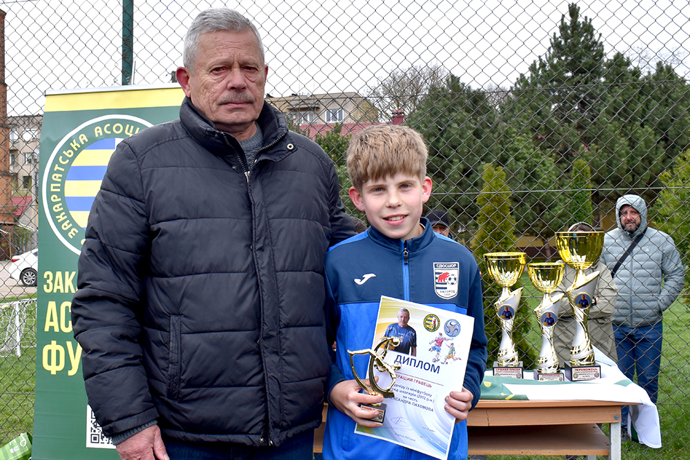 Кубок та подяку, як учаснику турніру, Віктор Качур вручив капітану команди із КЗ СДЮСШОР ЗОР (Ужгород). Віктор Миколайович та ветеран футболу Іван Улинець нагородили кубком, бронзовими медалями та дипломом з гравців АФ «Минай». Гарний кубок та диплом за 2-ге місце, срібні нагороди В. Качур та І. Улинець вручили юним футболістам зі Сваляви (ФК «Сузір’я»). Головний трофей за перше місце ювіляр О. Пахомов вручив своєму внукові Владу, а його партнерам та тренеру М. Фанті – золоті медалі та диплом.