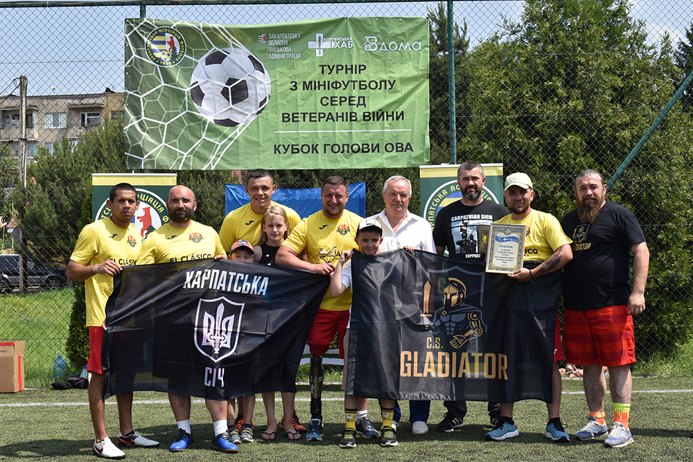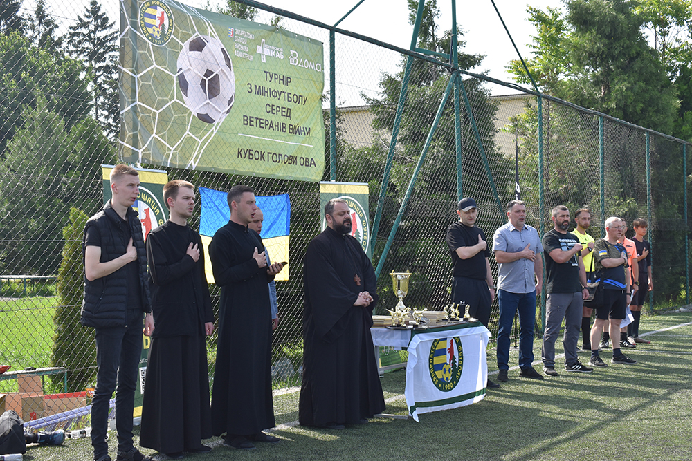 …І знову м’яч покликав ветеранів війни на зустріч. У традиційних змаганнях із мініфутболу взяли участь 8 команд. На урочистому відкритті учасників спортивних баталій зі словами вдячності та підтримки вітали Олександр Музиченко, заступник голови ОВА, Руслан Пишка, директор КЗ «Ветеранський простір вдома» Закарпатської обласної ради, Іван Дуран, голова Закарпатської асоціації футболу, та отець Петро Береш, ректор Ужгородської греко-католицької богословської академії імені блаженного Теодора Ромжі. Її семінаристи після хвилини мовчання за загиблими у війні захисниками, волонтерами та всіма громадянами нашої держави чуттєво заспівали Державний Гімн України та Молитву за Україну. А ще, забігаючи наперед, приготували після матчів смачний бограч…