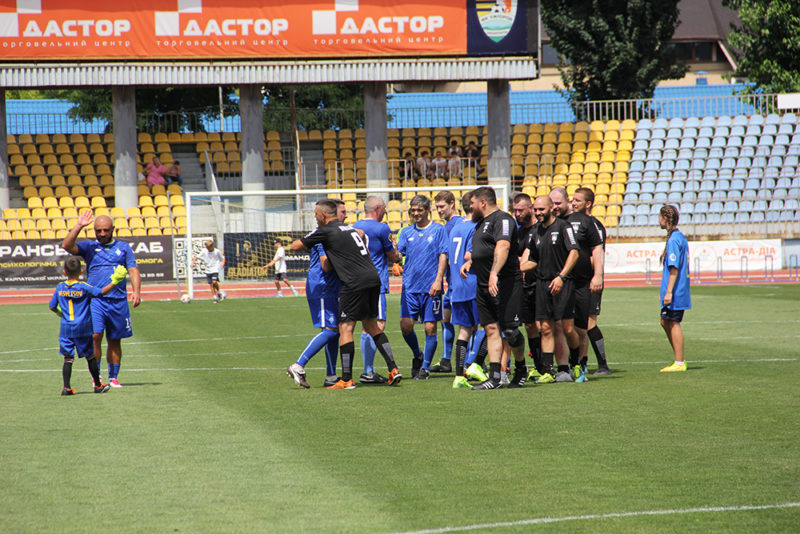 Власне ж гра видалася результативною й завершилася внічию 6:6. У складі обох команд виступали такі відомі особистості, як майстер спорту СРСР Іван Шарій, найкращий бомбардир чемпіонату світу з футболу 1994 року Олег Саленко, ексгравець збірної України Дмитро Топчієв, капітан першої в Україні ветеранської футбольної команди осіб з інвалідністю Костянтин Кашула та інші.