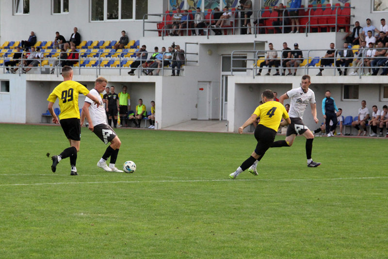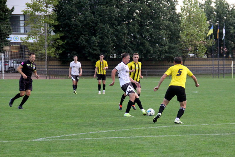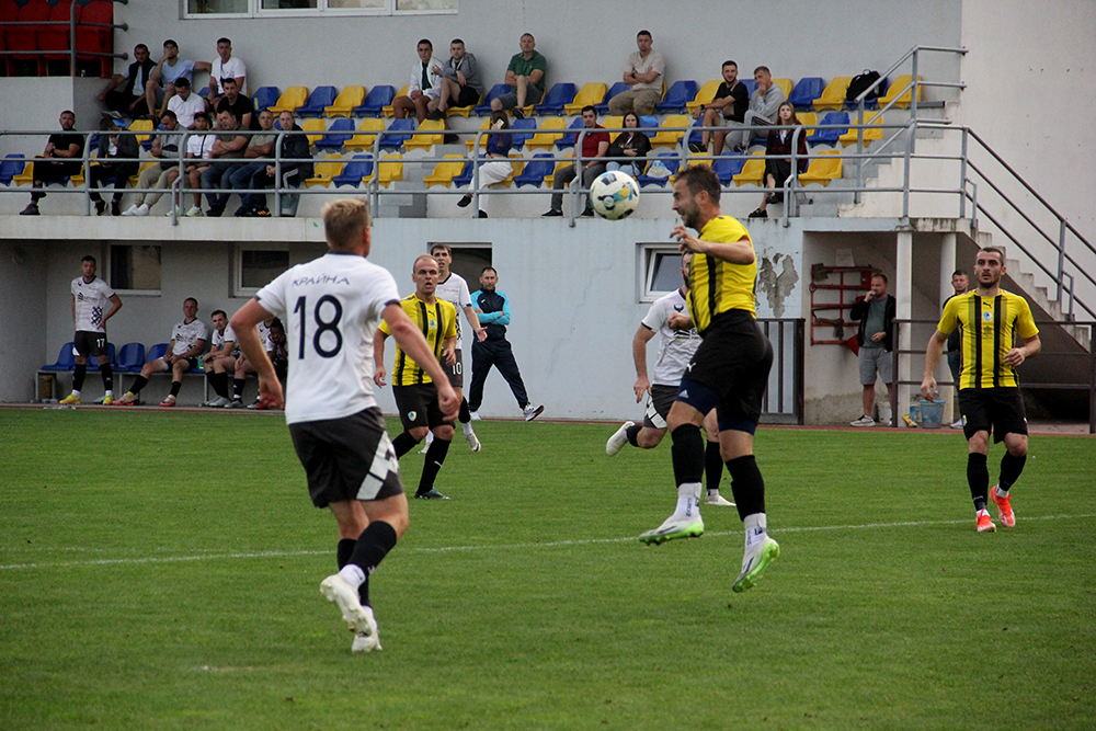 За час, що лишився, футболісти, які поступалися, могли відзначитися тричі. Та двічі м’яч потягнув воротар Віталій Фанта: після дальнього удару в дев’ятку Юрія Каганця та виконання суперником стандарту. У ще одному епізоді з вигідної позиції в «Будівельника» не склалося з ударом. Отож на перерву мінімальна перевага «Сокола – «Крайни».
