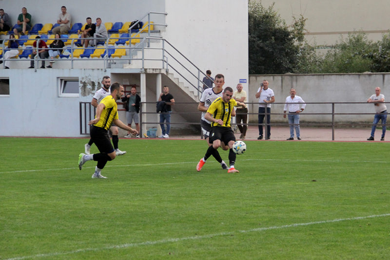 До перерви перевагою володіли підопічні Івана Криси. Хоч у цілому гра видавалася рівною. Принаймні за створеними моментами. Та все ж номінальні гості більше тисли в атаці й наприкінці першого тайму досягли свого. На 33 хв. після подачі кутового Іван Жентичка скористався неузгодженістю дій воротаря й оборонців суперника та у воротарській площі випередив одного із захисників, пробивши практично в порожні ворота. 0:1.