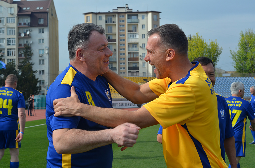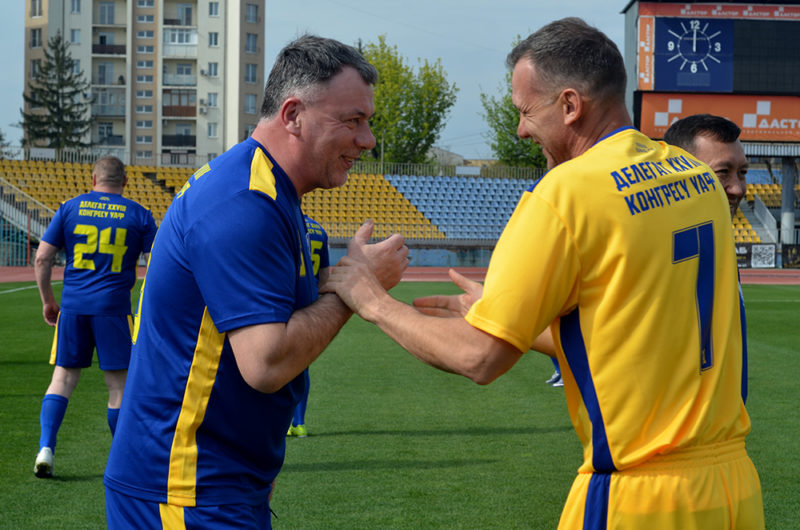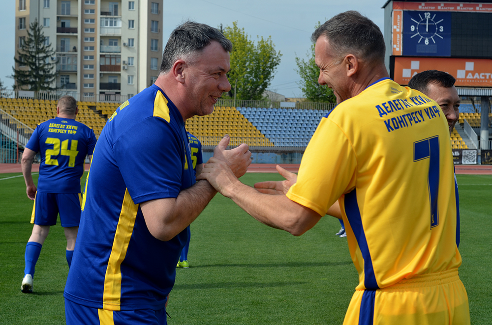 День роботи завершився матчем конгресменів. На поле вийшли «Жовті» під керівництвом Олега Лужного та «Сині», тренером яких виступив ще один відомий у минулому гравець, а також тренер Олександр Головко. За обидві команди зіграв очільник УАФ Андрій Шевченко. У першому таймі в складі «Жовтих» він став автором одного з голів, а сама команда стала проміжним переможцем – 4:1. У другому ж таймі Андрій Миколайович уже допомагав «Синім» і вже фактично першим своїм ударом влучив м’яча в бокову стійку. Надалі ж його друга команда зуміла перехопити ініціативу й перемогла із загальним рахунком 6:5. Слід зазначити, що, крім відомих футбольних функціонерів, на поле вийшли й такі знані в минулому гравці (крім згаданих), як Ігор Шопін, Олег Кучер та інші.
